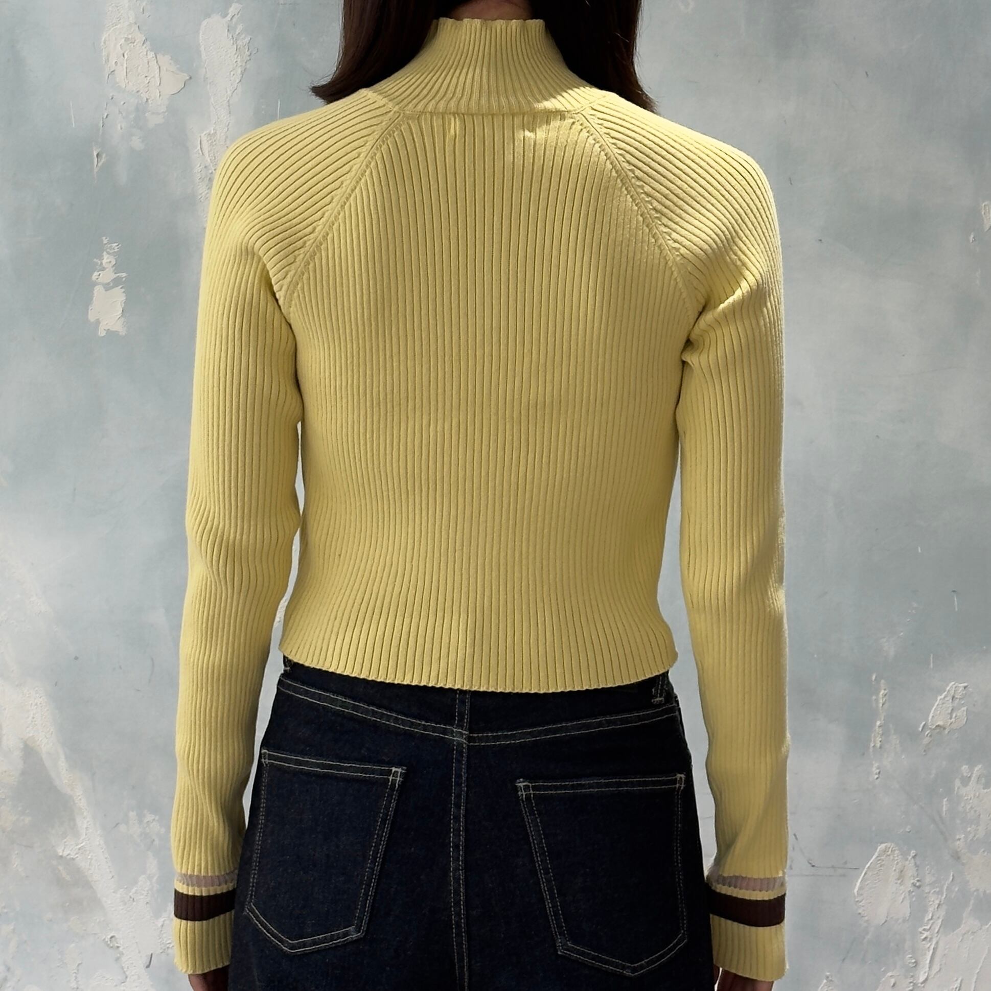 前身頃と袖口部分にシアー素材でラインを入れており、スポーティー感のある1枚に仕上げています。