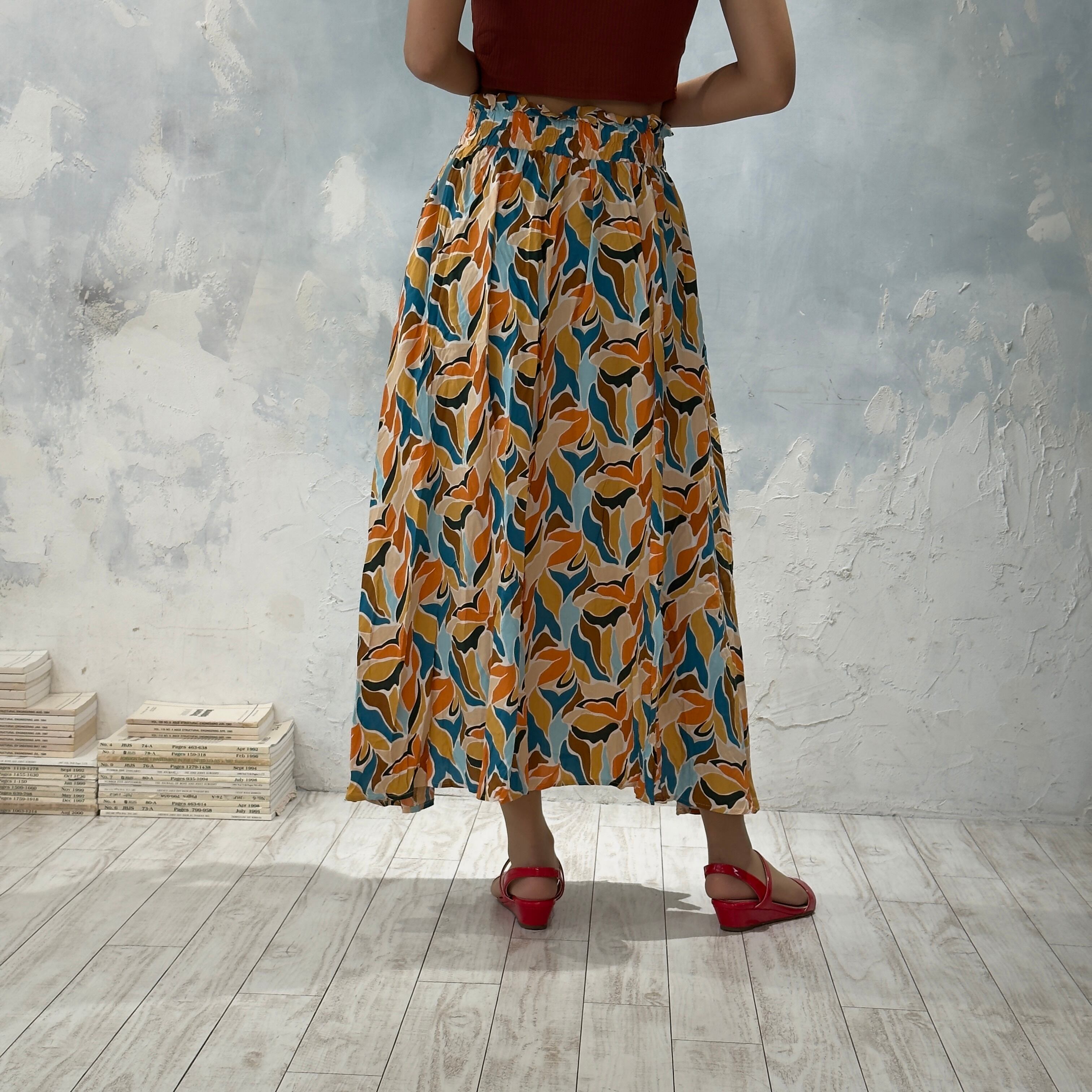 サス付き総柄フレアスカート