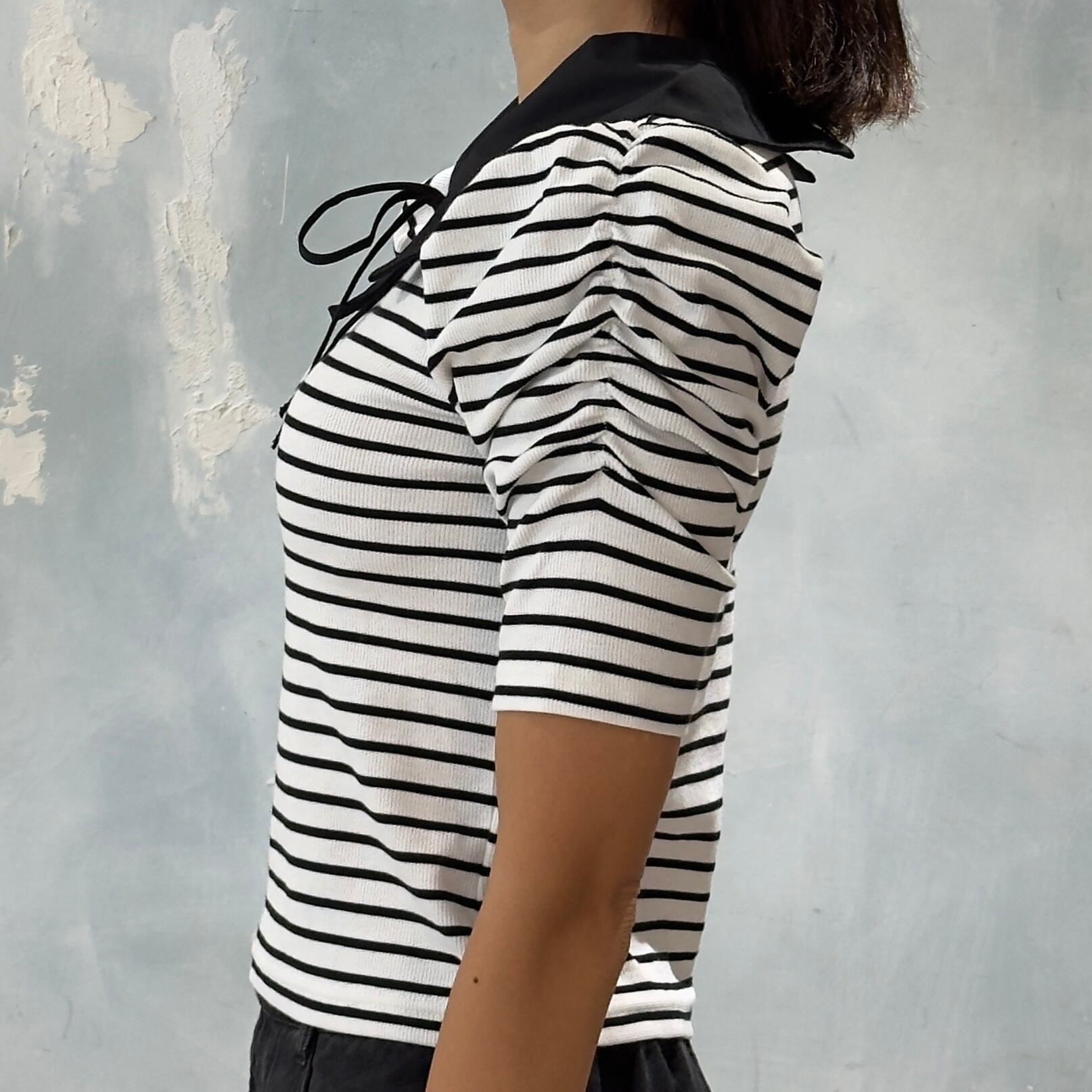 優雅なボリュームを持ったパワーショルダーでトレンドムード溢れるトップス。