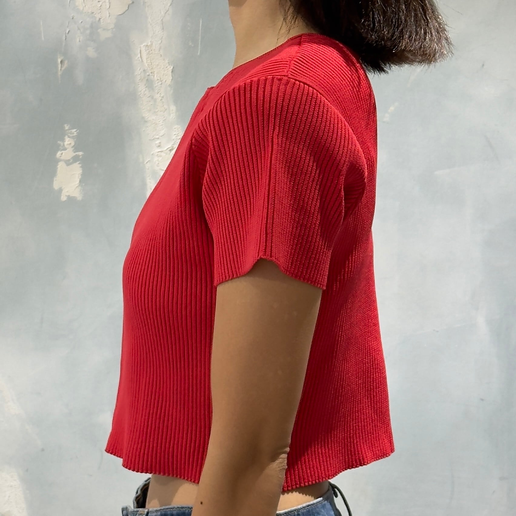 コンパクトなサイジングで女性らしさが抜群なトップス。