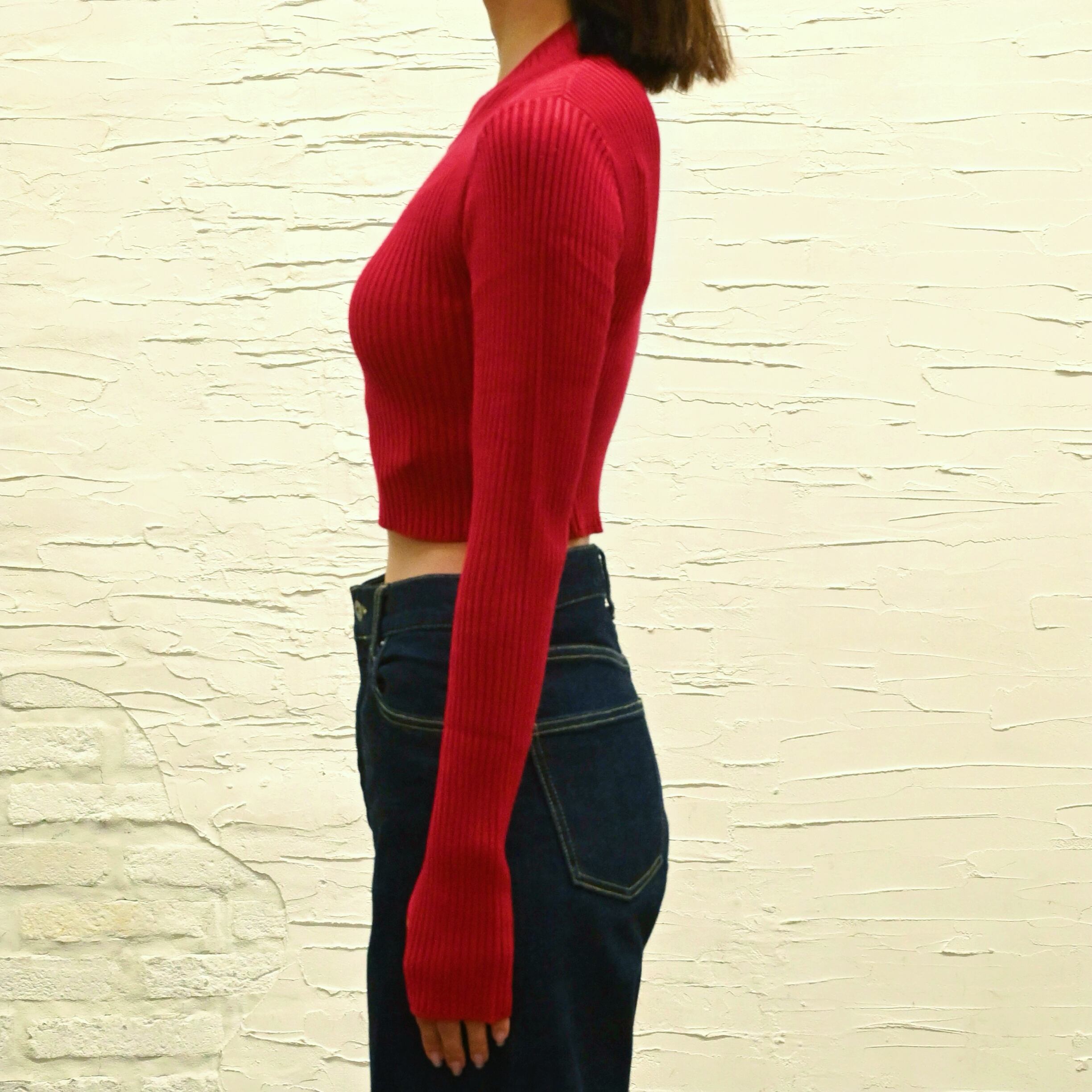 袖口にサムホールのデザインを加える事で、腕をより長く細く見せる。