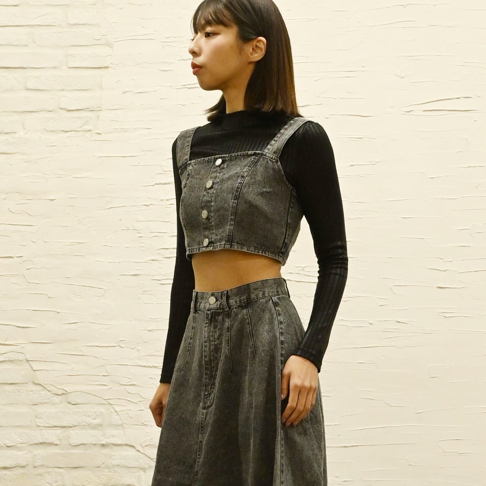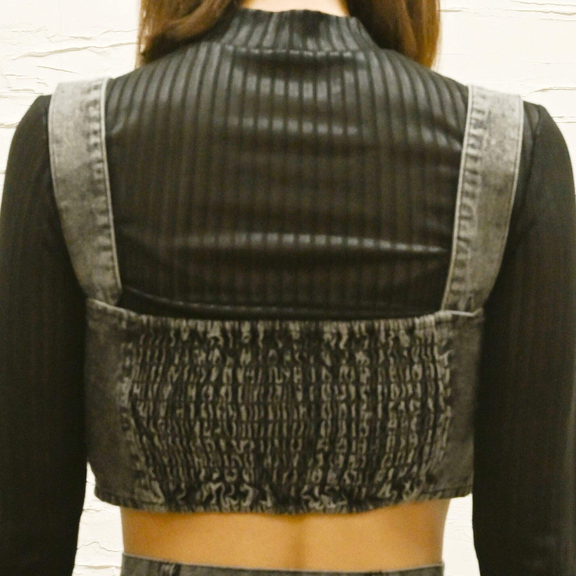 色落ち感を楽しめるデニム素材で仕立てたビスチェ。