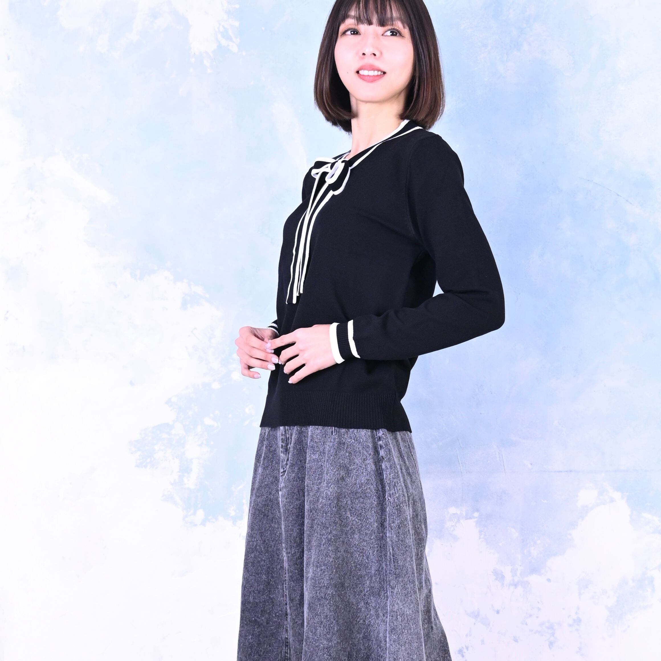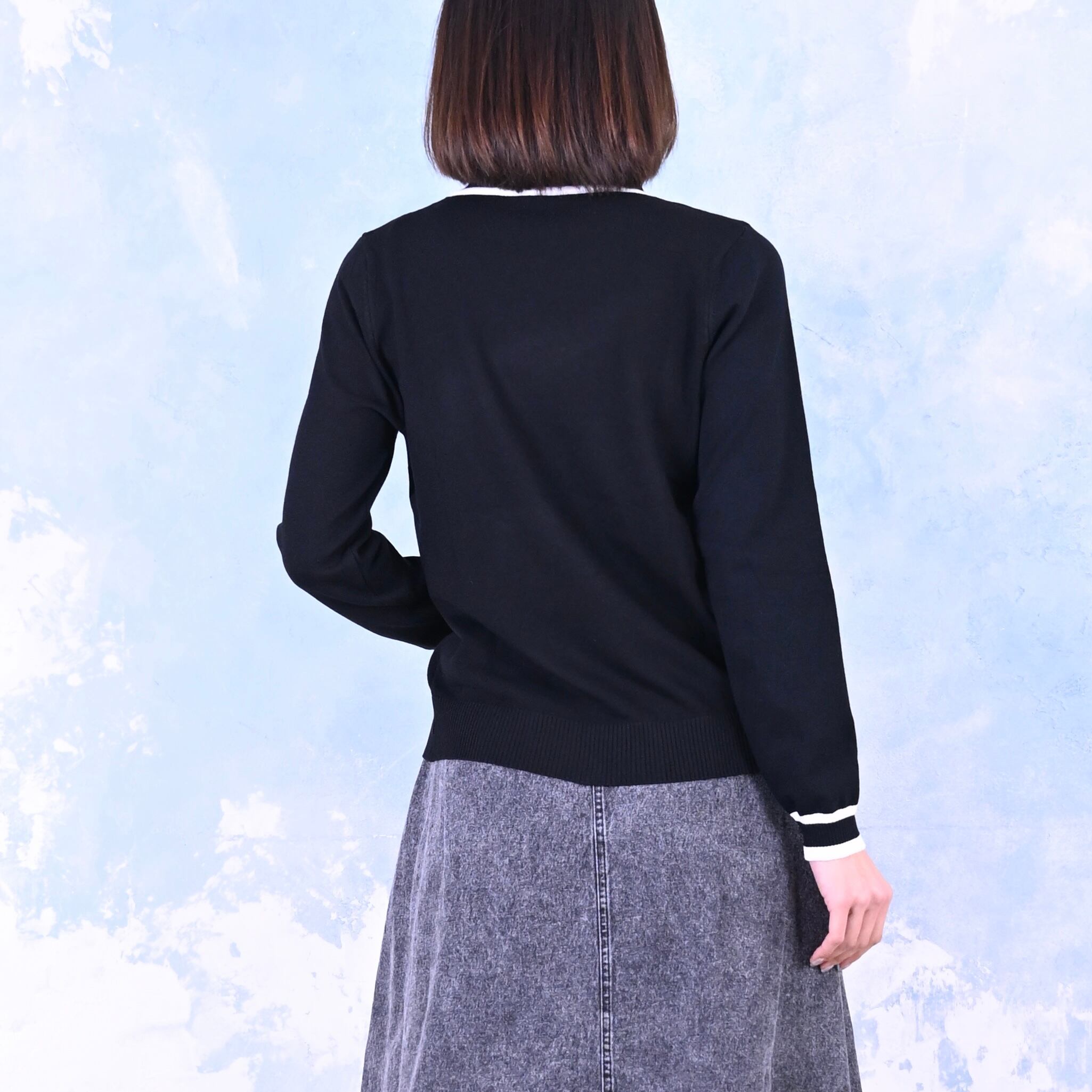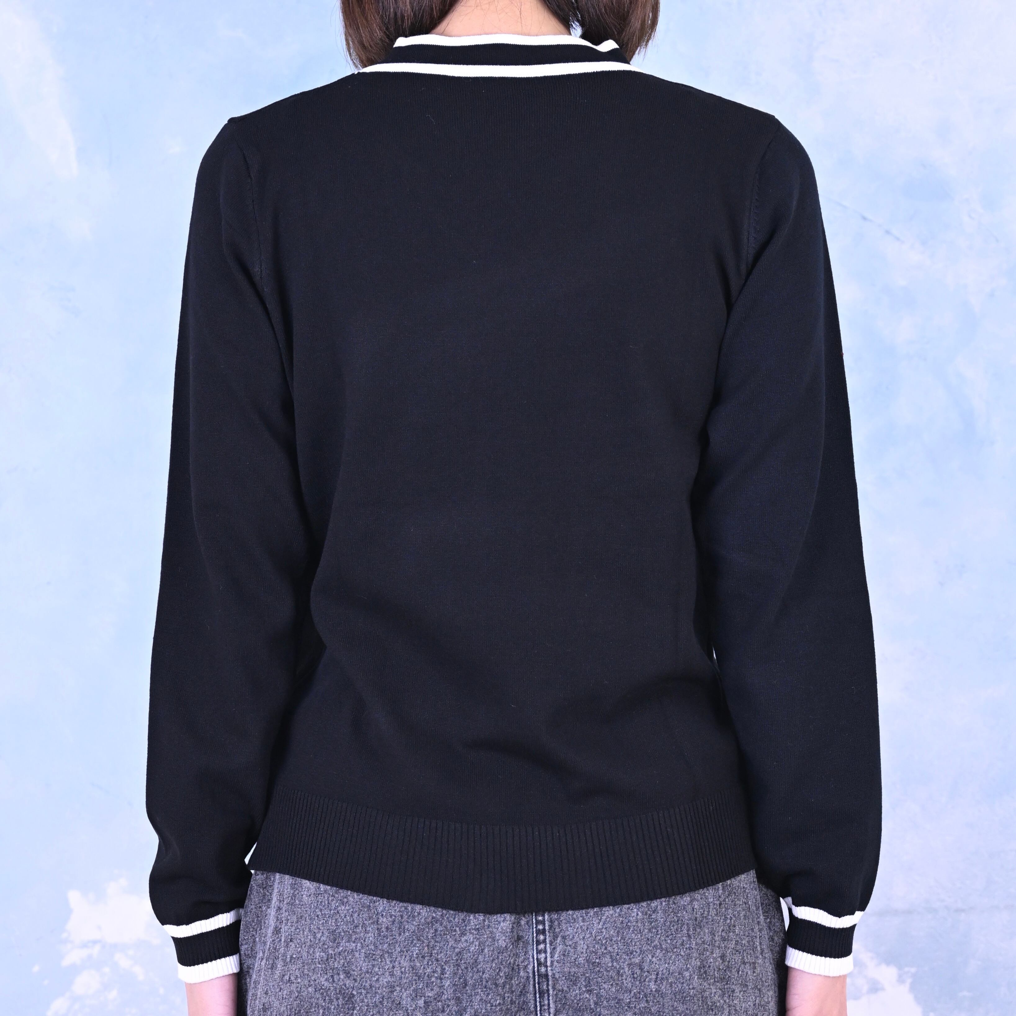 配色ライン入りボウタイニット