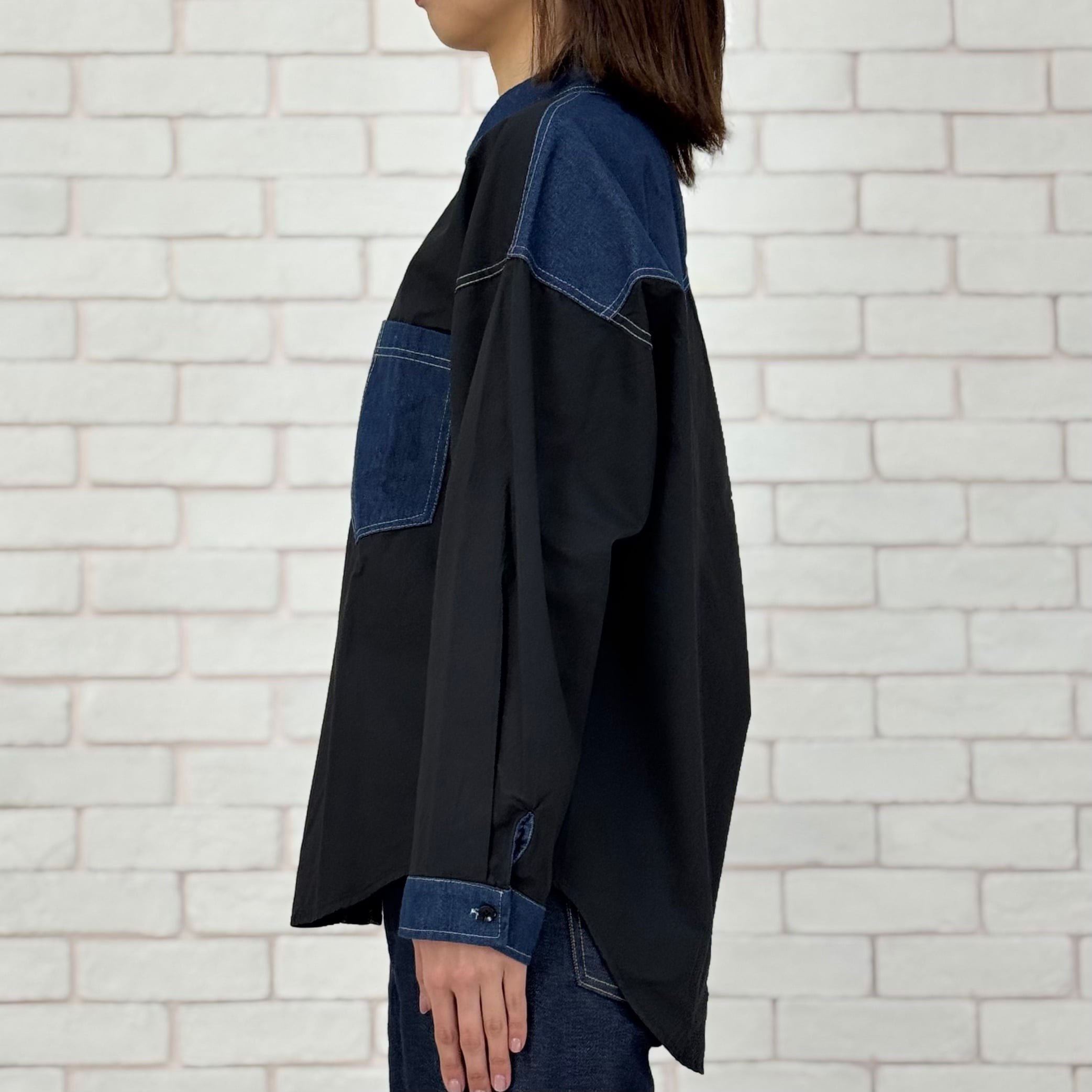 デニム切替オーバーシャツ