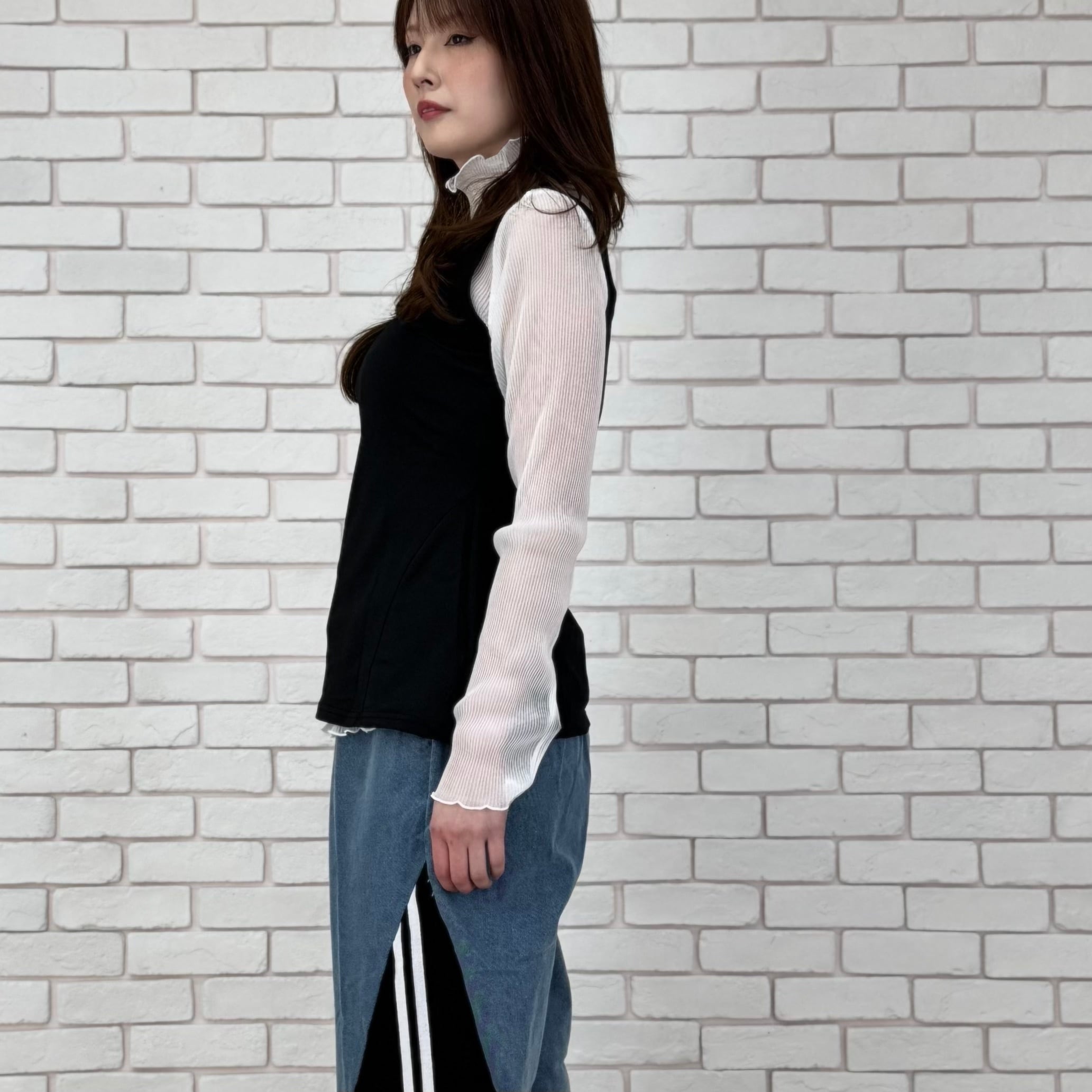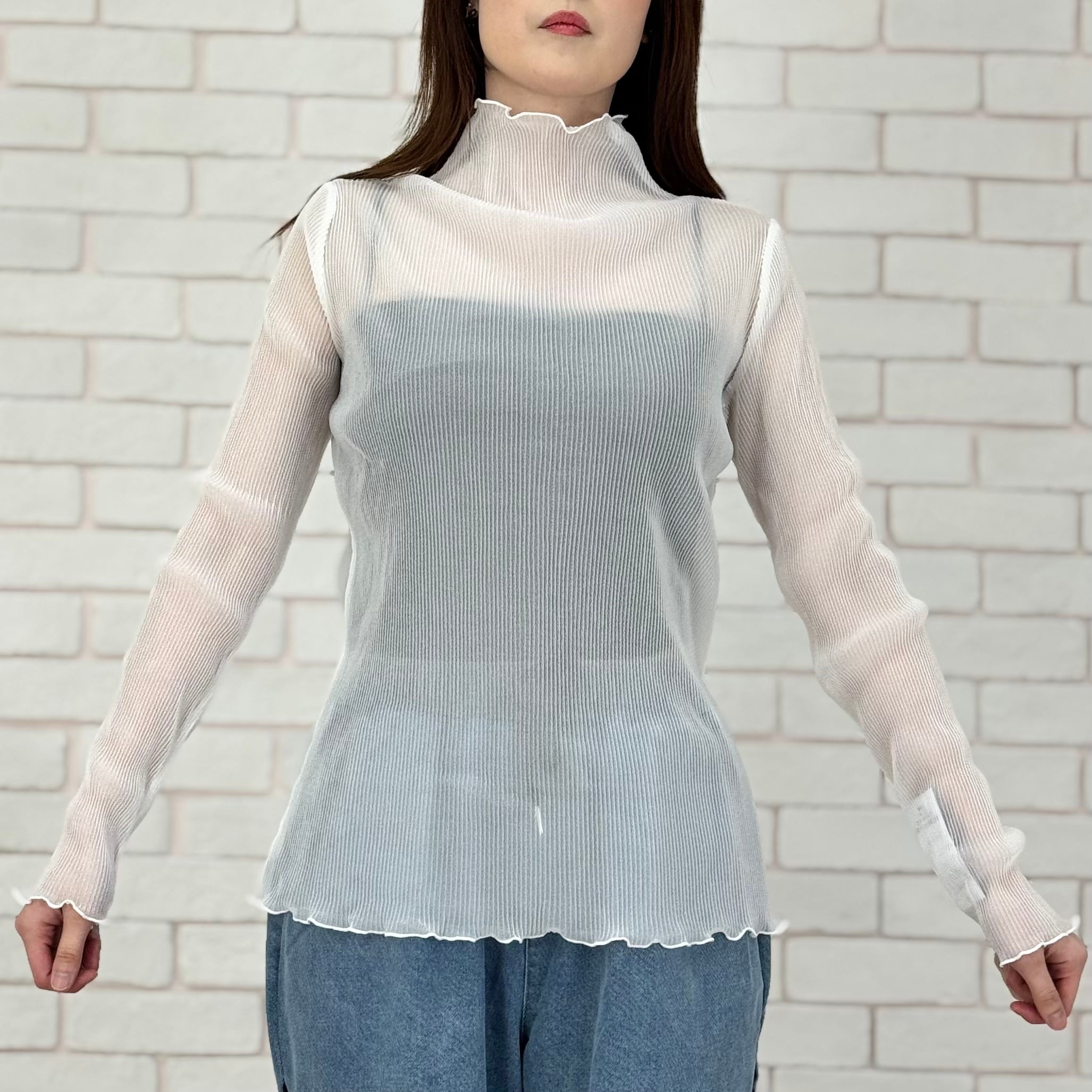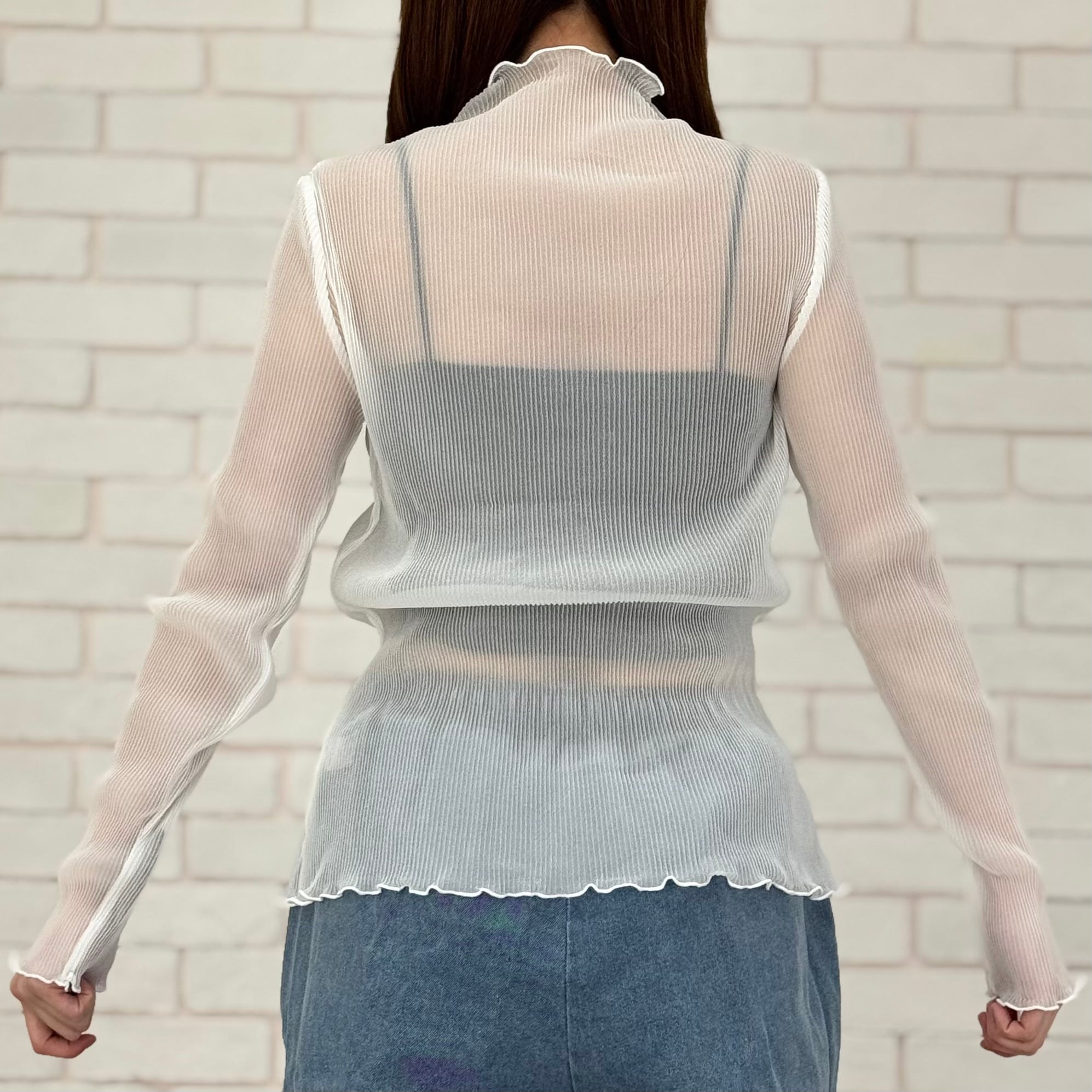 レイヤードした際の透け感が抜群で、シンプルなアイテムとの相性も◎