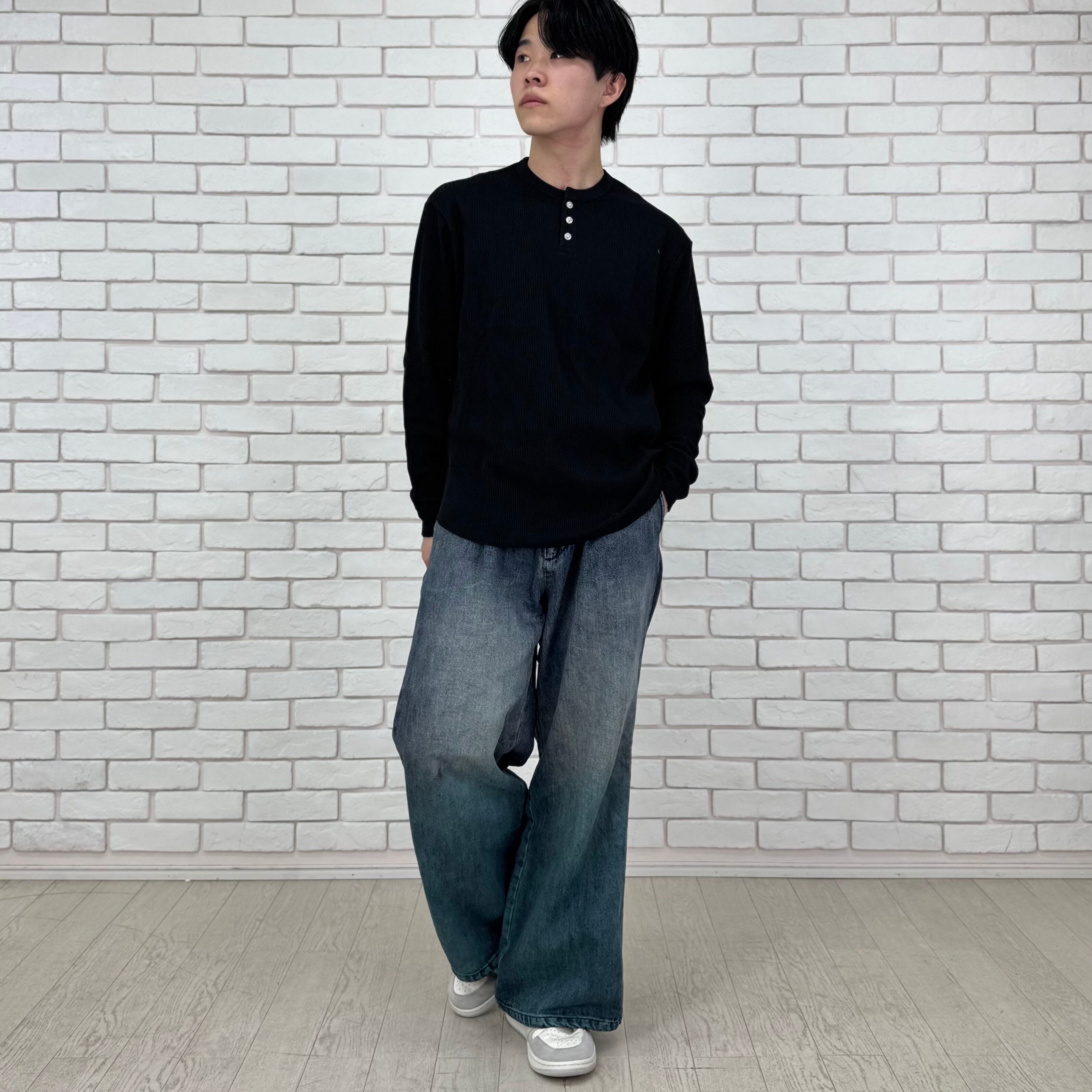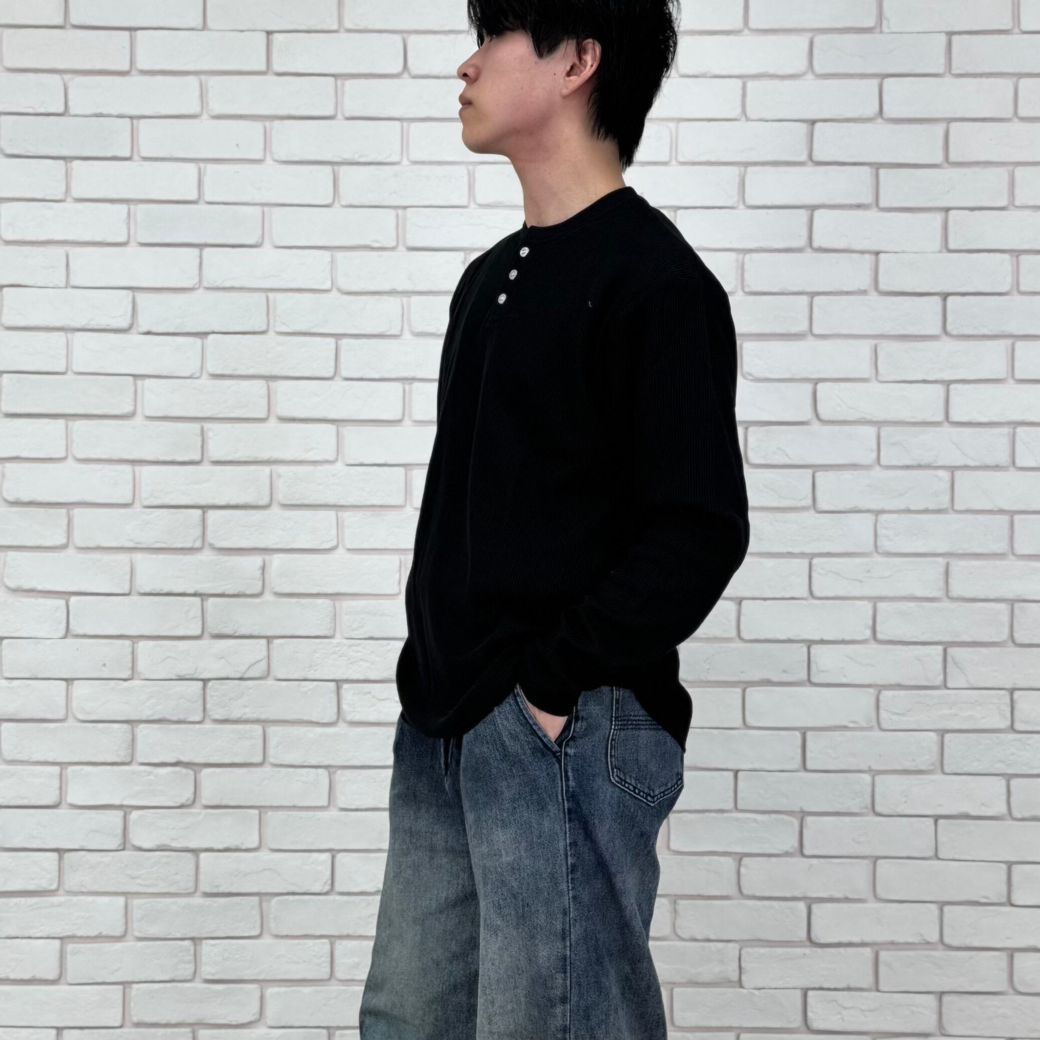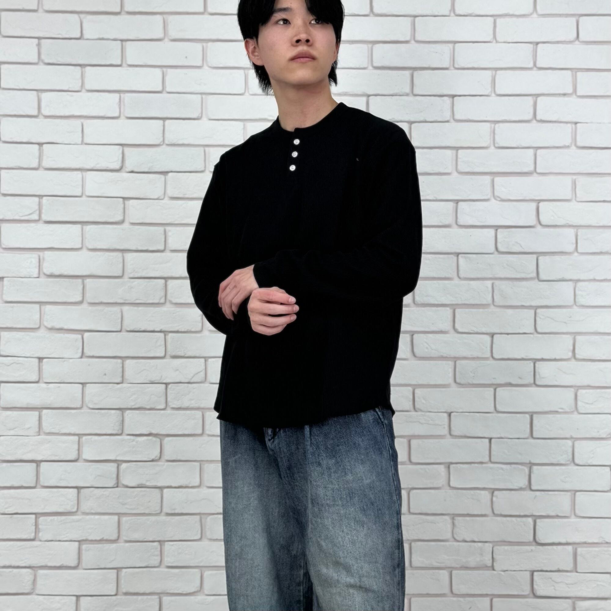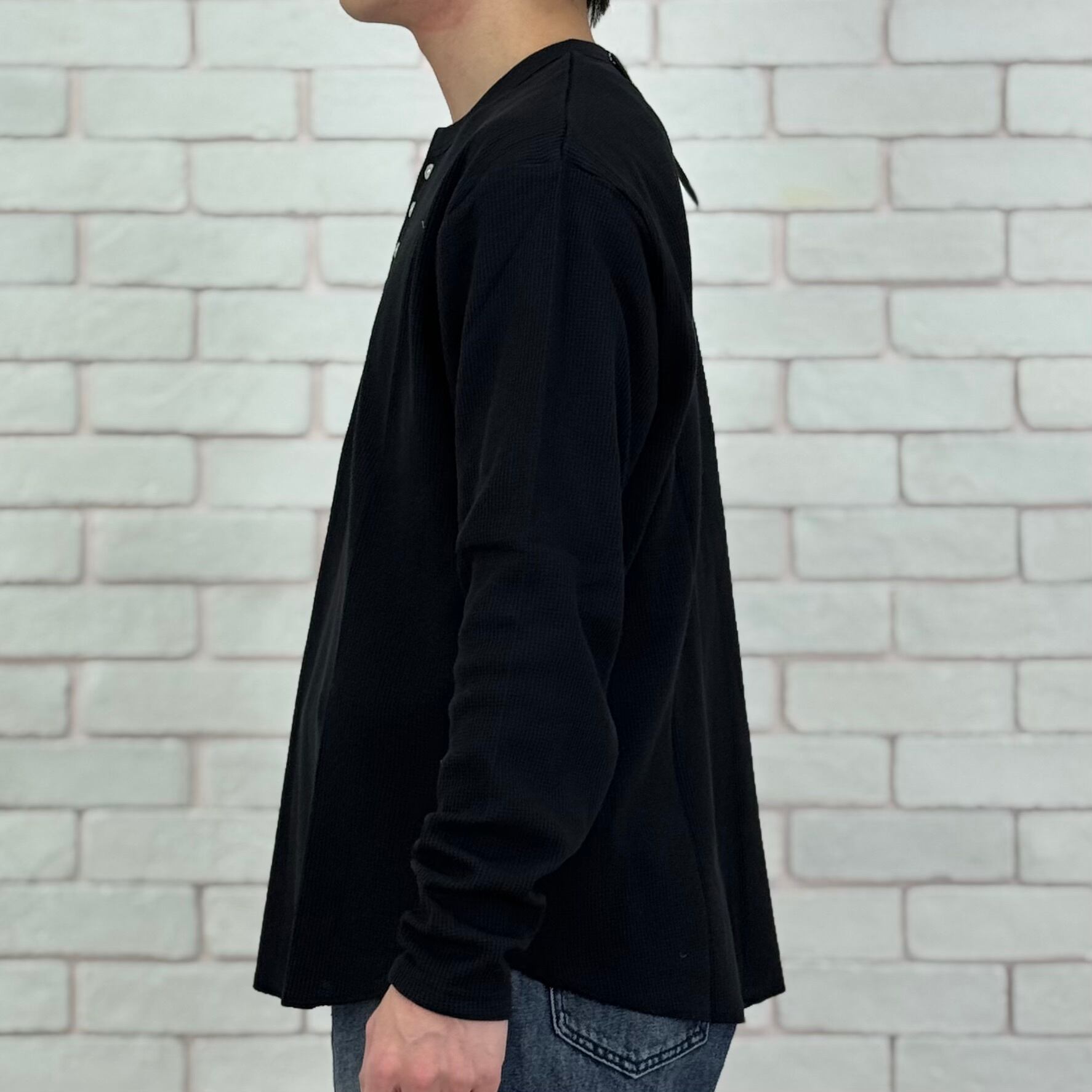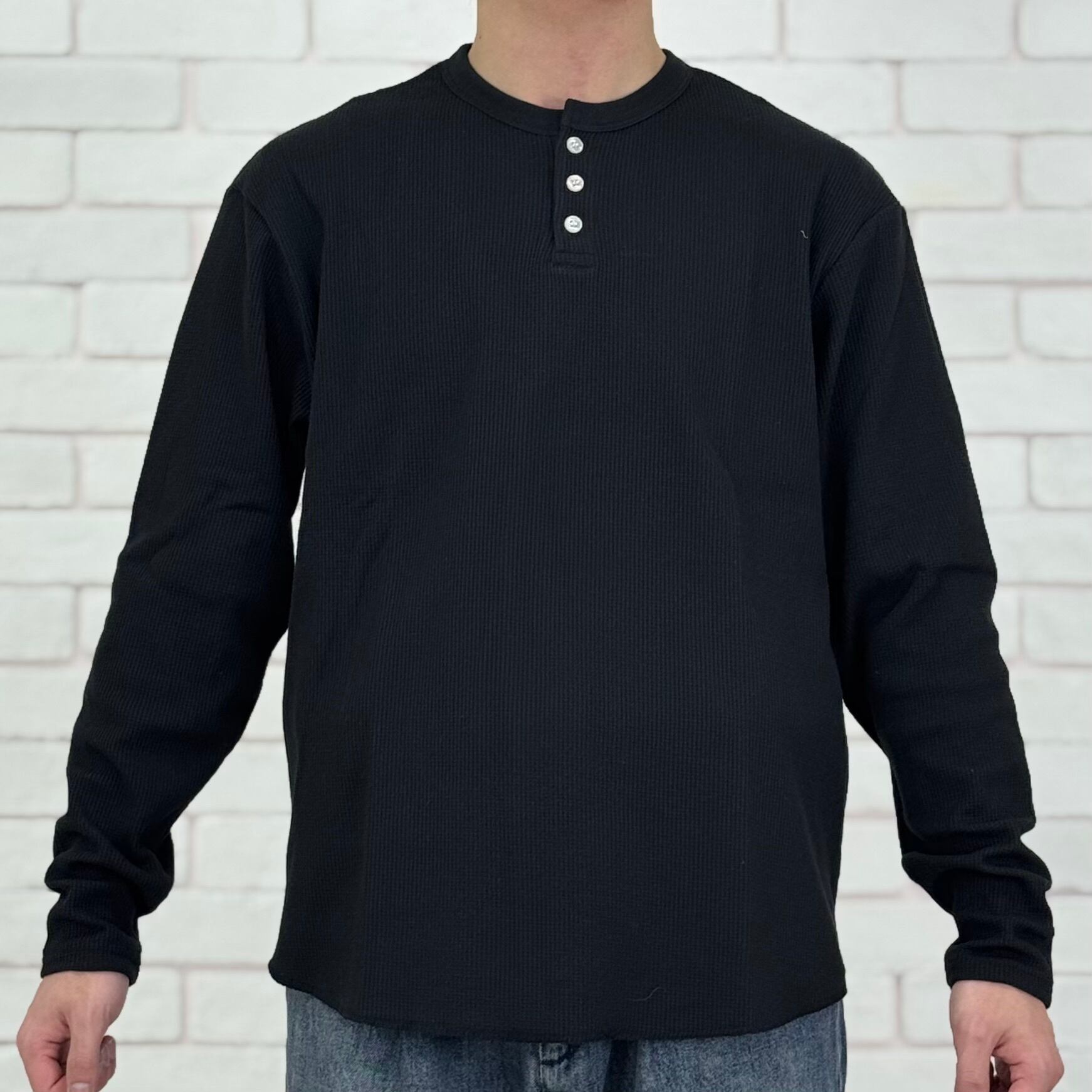 ヘンリーネックワッフルトップス
