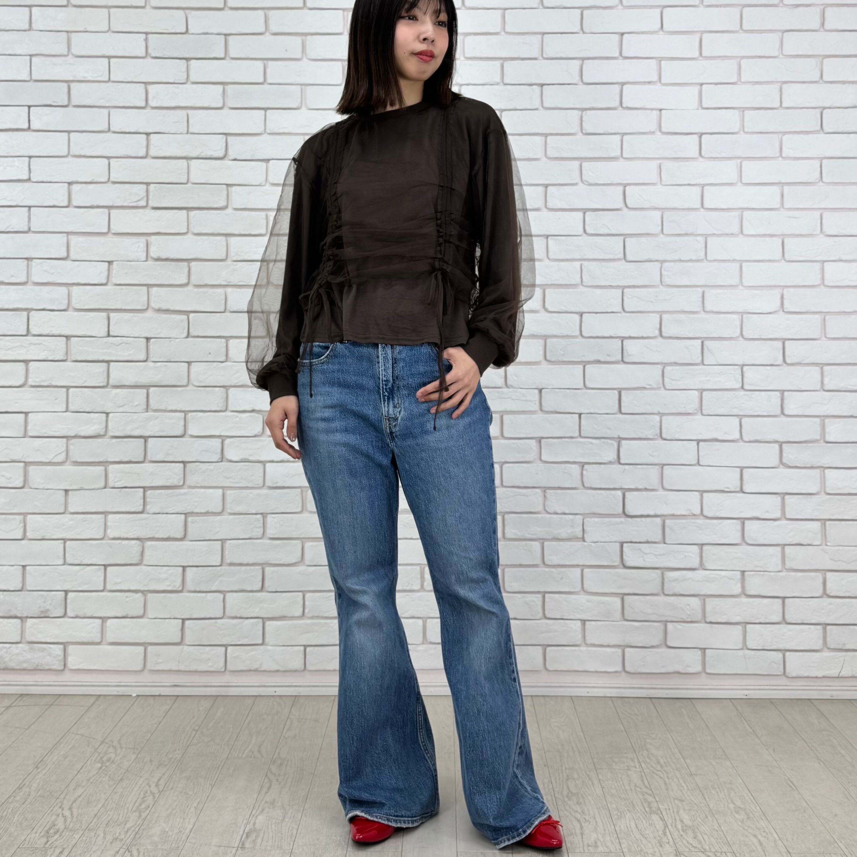 ボトムはシンプルにデニムやワイドパンツが相性抜群です。