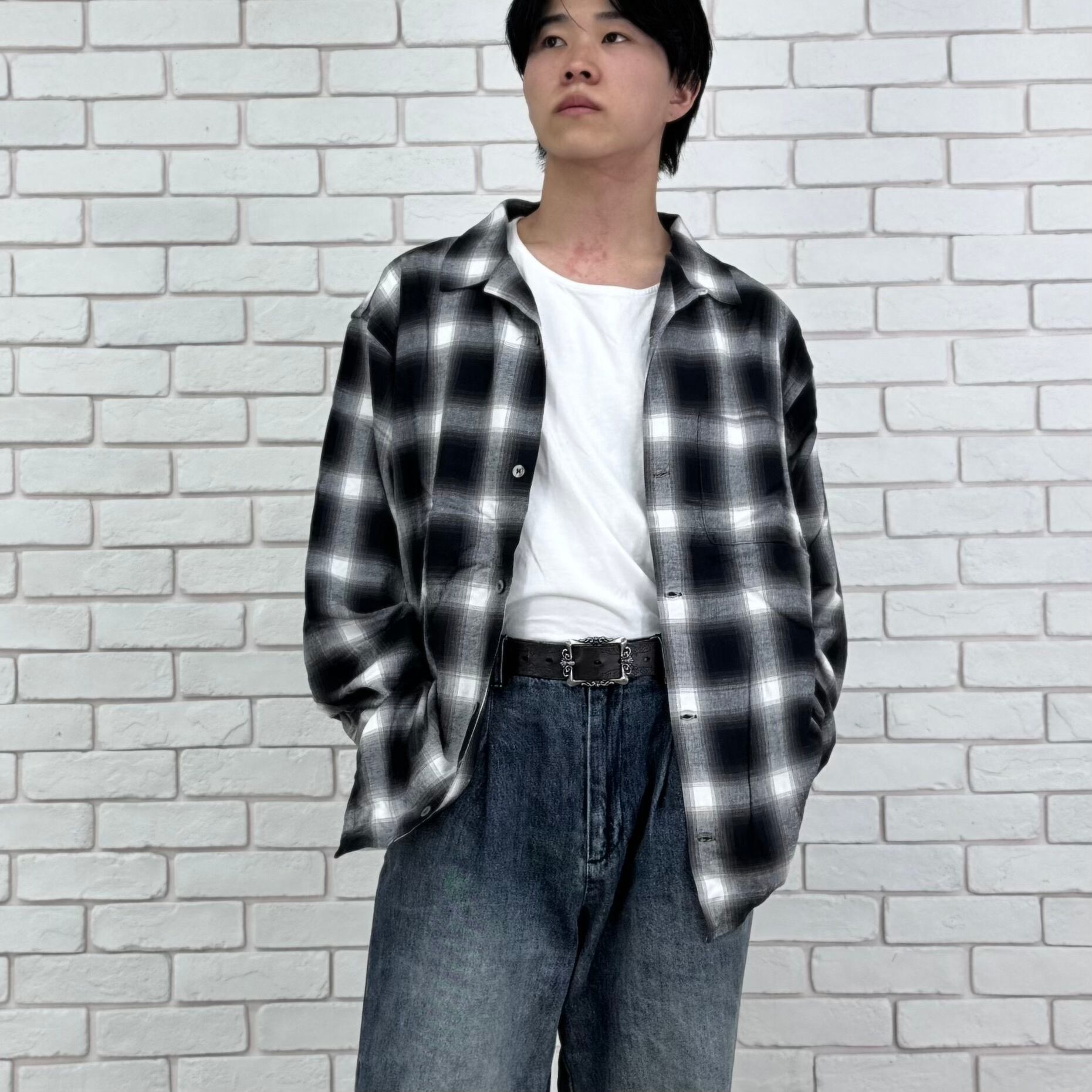 オンブレチェックシャツ