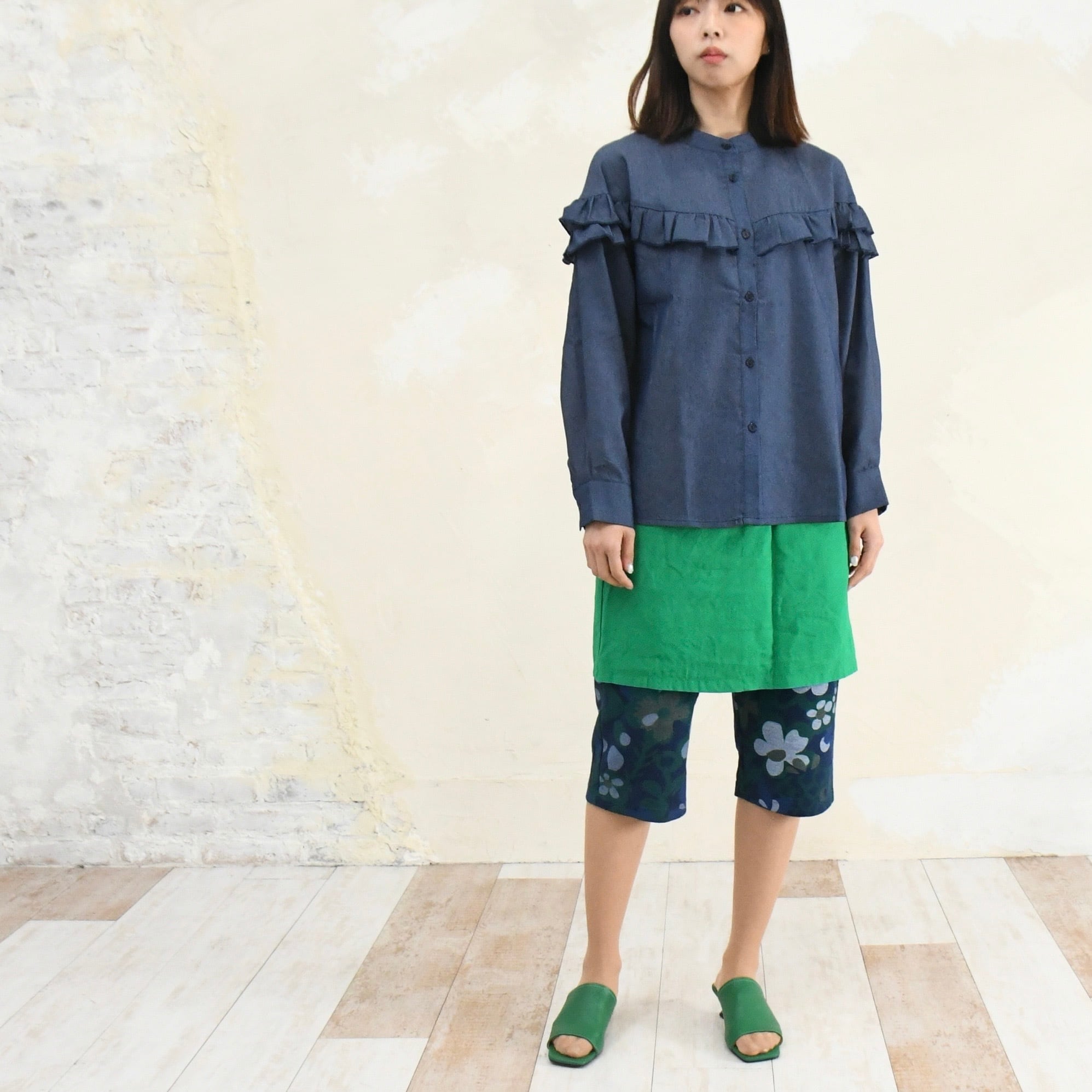 特徴のあるヒールが付いたシンプルなデザインながらも横顔がキッチュなミュール。